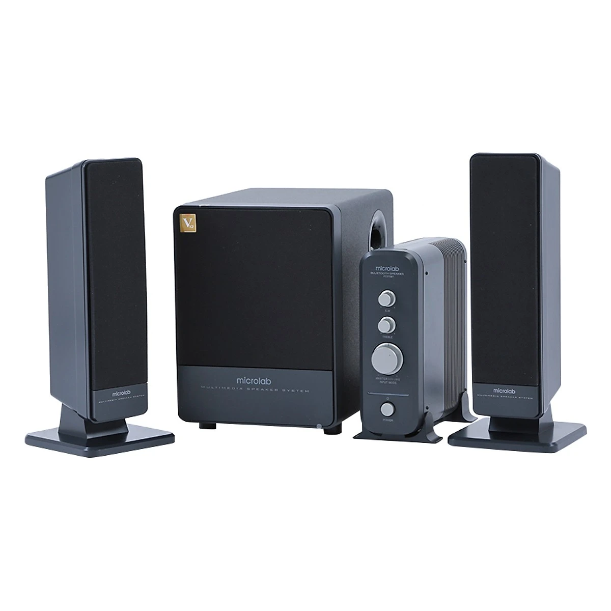 Microlab FC570BT speaker (2.1+1)  owns a speaker system with a modern, eye-catching design including 2 satellite speakers, 1 subwoofer and 1 audio amplifier (amplifier) ​​which is a combination of two colors black and white. silver, creating a luxurious and sophisticated style for the user’s personal work and entertainment space.